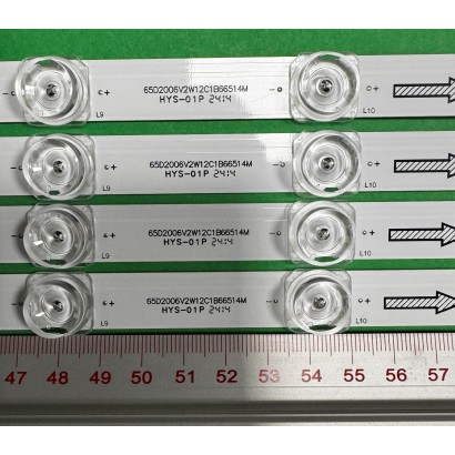 LED-Hintergrundbeleuchtungsstreifen für TV TCL 65" Set 4 Stück X 65HR330M12A2 V3 65S12 12*4-B02 TCL65LB22_3030F2.4D_V0.1_20211230, 12LED, 665MM, 6V, weißes Licht,