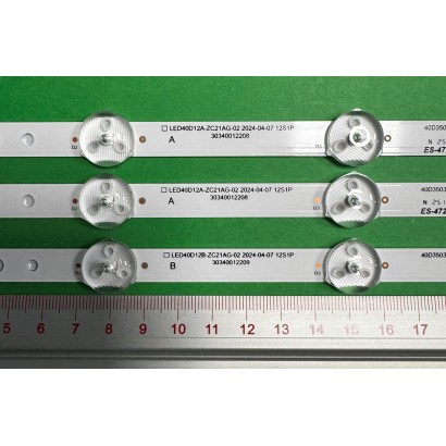 LED-Hintergrundbeleuchtungsstreifen für TV KRUGER & MATZ 40" Set 3 Stück, 2 Stück X LED40D12A-ZC21AG-02 2017-08-05 12S1P 30340012208 & 1 Stück X LED40D12B-ZC21AG-02 2017-08-05 12S1P 30340012209, 12LED, 804MM, 3V,