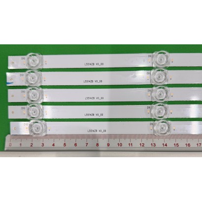 LED-Hintergrundbeleuchtungsstreifen für TV PHILIPS 55" Set 5 Stück x LB5514Z V0_00, 705TLB55B336BM05L 705TLB55B33KBM01Z, 10LED, 3V,