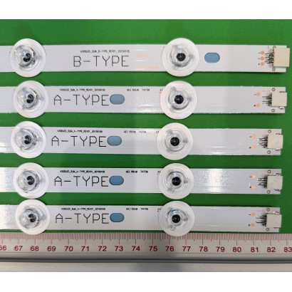 LED-Hintergrundbeleuchtungsstreifen für TV VESTEL 43" Set 5 Stück, 4 Stück X 430DLED_SLIM_A-TYPE_REV01_20150105 & 1 Stück X 430DLED_SLIM_B-TYPE_REV01_20150105, 10LED, 820MM, 3V,