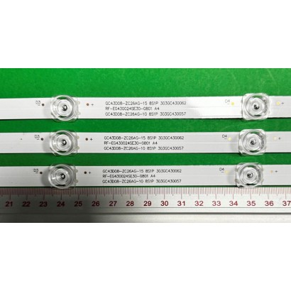 LED-Hintergrundbeleuchtungsstreifen für TV XIAOMI 43" Set 3 Stück X RF-FP430005SE30-0801 A5 RF-EG430024SE30-0801 A4 GC43D08-ZC26AG-15 GC43D08-ZC26AG-10, 8LED, 795MM, 3V